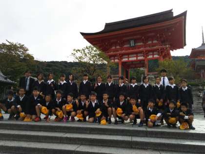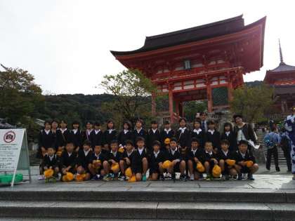 清水寺に到着しました。たくさん外国の方も来られていて、「Hello!」と、声をかけて会話をしている子もいます。
