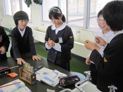 理科室では色々な水溶液にリトマス紙をつけ、色の変化から仲間分けをしていました。