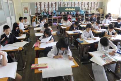 紙芝居を聞いて、お話の世界を想像しながら、頑張って描きました。