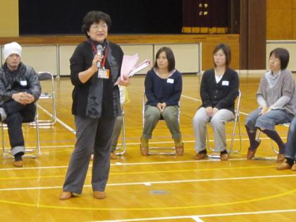 その間、保護者の方々は、体育館で子育てワークショップをおこないました。ワークショップのねらいは、保護者間の交流(つながり作り)と入学時の不安の軽減です。雑談したり、ゲームをしたりする間にずいぶん親しくなり、これからの繋がりの第一歩になったようです。橋本市家庭教育支援チーム(ヘスティア)の藪添様、村木様、田中様、上田様に講師をお願いしました。次に、宮崎教諭より「入学にあたって」のしおりをもとに、生活、学習、健康、通学、入学準備(用意するもの)等についての説明がありました。続いて堀田養護教諭より、この時期に身につけさせたい生活習慣等について、プリントを配付して簡単な説明がありました。