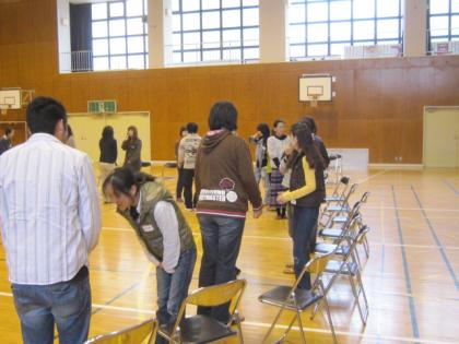 内科検診、歯科検診、視力検査、聴力検査、スクリーニング検査を、まわる順を異にして4つのグループにわかれておこないました。