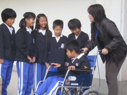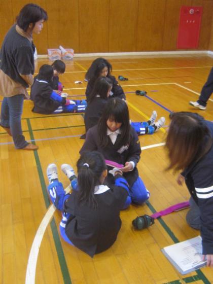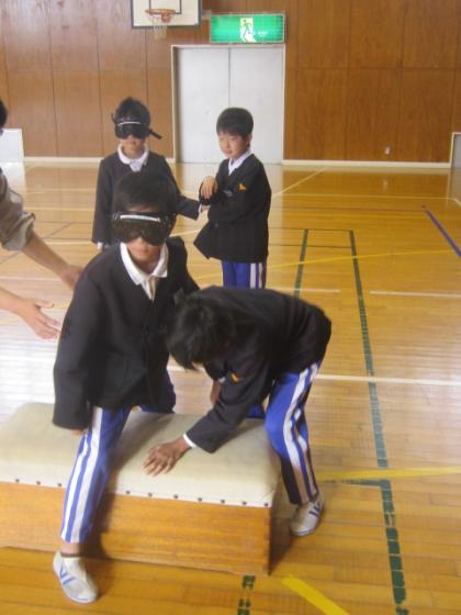 橋本市社会福祉協議会や点字サークルの方々の指導のもと、また、保護者の方々の協力を得て、2,3時限目に体育館と教室でキャップハンディ体験と点字学習をおこないました。