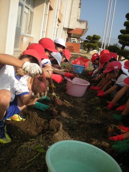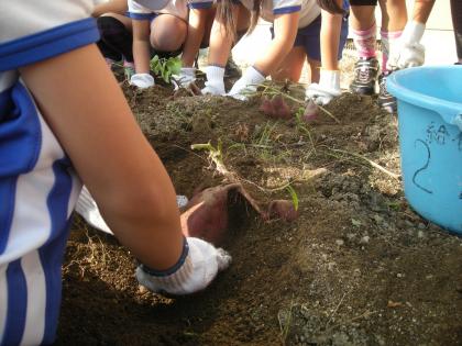 採れたイモは、1年生を招待してふかしイモにして一緒に食べるそうです。