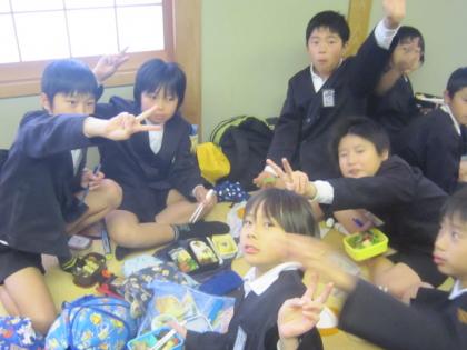 11時過ぎに教室を出て、ヨシスト前からバスに乗り込んだ5年生。会場には11時50分に着きました。