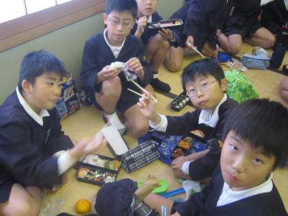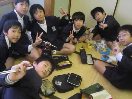バスで学校を出た5年生。会場には11時50分に着きました。