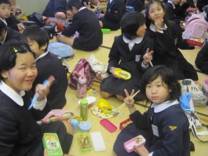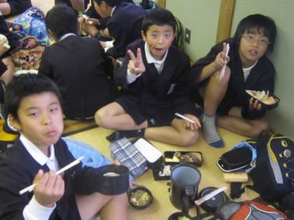 バスで学校を出た5年生。会場には11時50分に着きました。