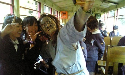 14時35分にトロッコ亀岡駅を出発しました!。トロッコ嵯峨駅には15時01分着です。鬼さんが出没!車内大騒々。