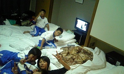 修学旅行一日目の就寝前の様子です。