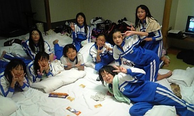 修学旅行一日目の就寝前の様子です。