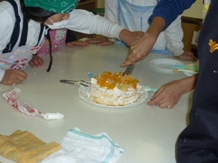 紀見小・境原小・城山小の3校の特別支援学級の交流会が、今回は紀見小で開かれました。クリスマスが近いので、ケーキ作りです。