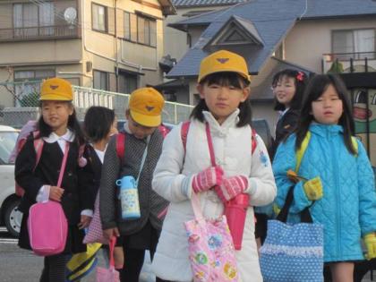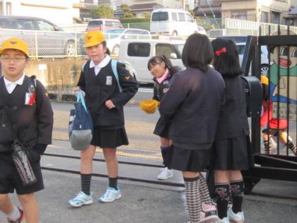 写真上:両方から「おはようございます」。うれしいけど、恥ずかしい。