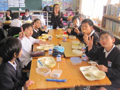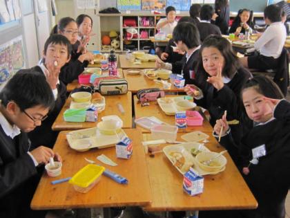 出来上がったおかずは、教室で給食と一緒にいただきました。