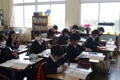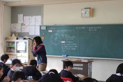 みんなで考えながら、かく方法を見つけていきました。この方法でいろいろな形がかけるということがわかったので、かいているところです。