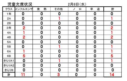 2月8日の欠席状況