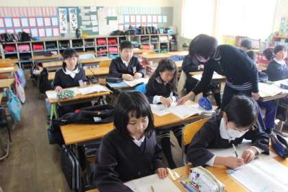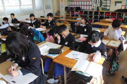 直方体、立方体の学習をしています。今日は、直方体や立方体の全体の形がわかるような図、「見取図」に挑戦しました。図の正面は、長方形、そのとなり合った面は平行四辺形になります。平行四辺形をかくのは、少し難しいようでしたが、慣れてくると、色々な大きさの直方体や立方体をかくことができました。