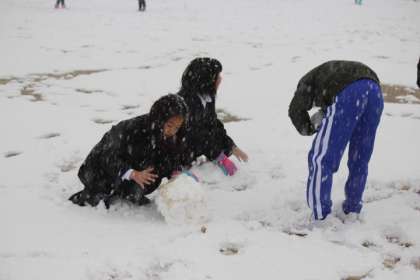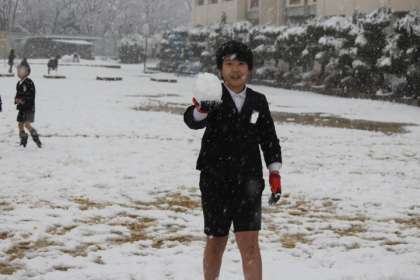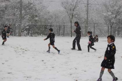 休憩時間、子どもたちは大喜びで雪一面の運動場へ。