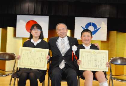 日々の学習や児童会活動、校外活動等で全校児童の模範となったことが二人の受賞理由です。受賞おめでとうございます。