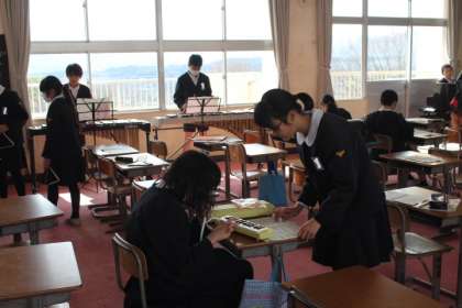 歌のテストをしている間に、合奏の練習をしている様子です。