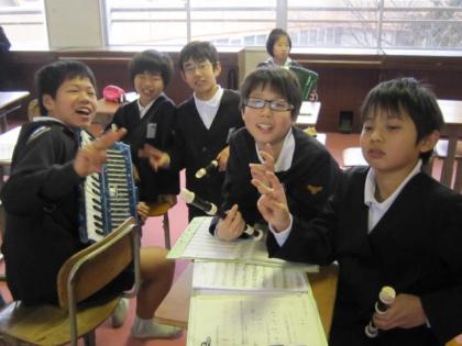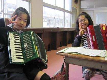 下:リコーダーとアコーディオンの男子、頑張るぞ〜。