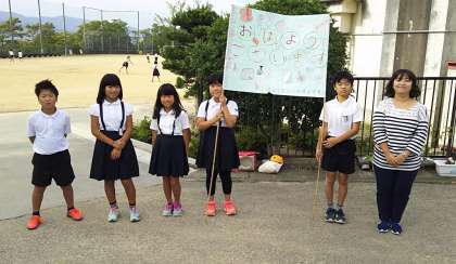 今朝のあいさつ運動は、5Aの健康委員が担当しました。