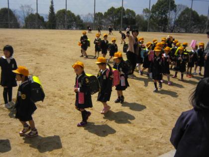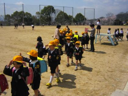 11時30分、今日も先生方の引率のもと、帰る方向別に分れて帰って行きました。