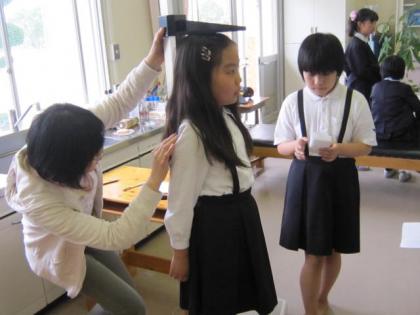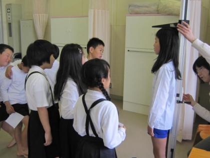 5年生の身体計測の様子です。高学年の仲間入りをして、気持ちも身体も成長期だね。