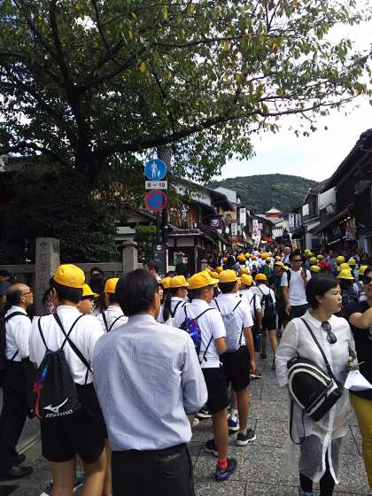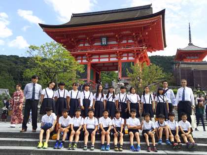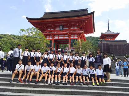 記念写真を門前でとった後、音羽の滝で願いをこめてお水を飲みました。学問の水、恋愛の水、健康の水。さぁ、どんな願いをこめたのでしょうか。