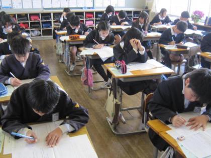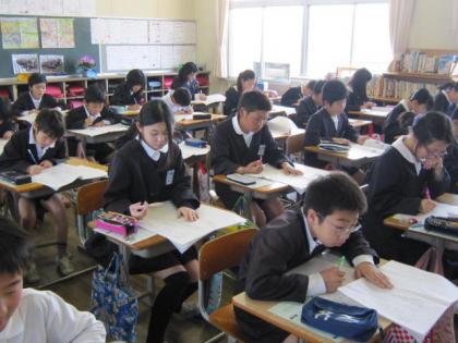 全国の小学6年生と中学3年生が挑戦している全国学力・学習状況調査。本校も6年生57名が挑戦しました。1時限目:国語A、算数A、2時限目:国語B、3時限目:算数B、新たに4時限目に理科が加わり、最後に質問に答え終了しました。どの子も、初挑戦。A問題では易しかったとの声もありましたが、B問題となると、なかなか手ごわく、問題を読み解く力がいるようで、かなりの苦戦をしいられていた様子でした。
