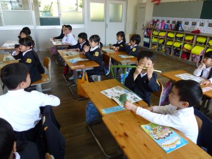 おかげさまで、1年生は今日の給食を全員残さずいただきました。