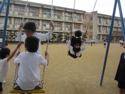 写真上:2人乗りは危険だよ。一番人気のブランコです。