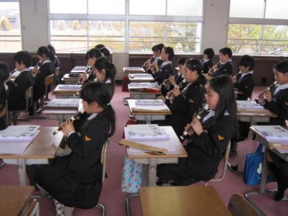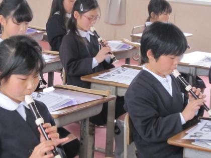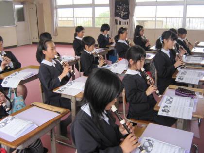 廊下にもれ聞こえてきたリコーダーの音色に誘われ音楽室に入りました。