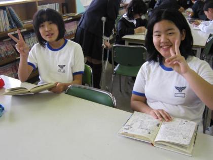 写真上:次は体育。着替えてから図書室で読書の6年生。
