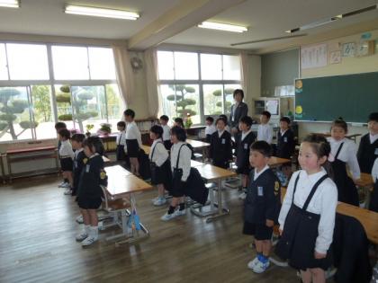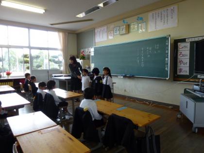 写真上:初めての授業参観。お母さん、私たちの勉強の様子見てね。