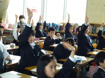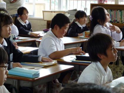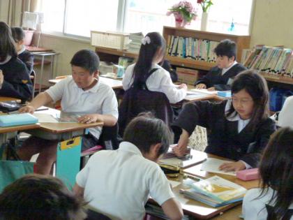 写真上:グループ学習だと、見せ合いをしながらできるからいいね。