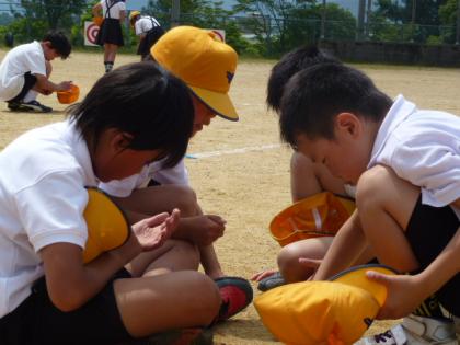 中:運動場に小さい石がたくさんあるなぁ〜(^_^;)