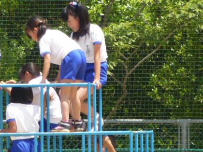 下:ジャングルジムのてっぺんから見る景色はどうかな?