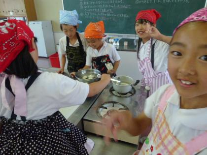 ☆ 5年 家庭科① 公開日 2012/06/07 更新日 2012/06/07 5年生 6月7日(木) 今日の家庭科の調理実習の時間では、「ゆでたまご」を作りました。 たまごをゆでるとどのように変化するのかを確かめながら、みんなで協力をして作りました。 写真上:ゆであがったたまごを水で冷やして、からをむきやすくしています。 中:やけどしないように、丁寧に水の中にたまごを入れています。 下:みんなで、たまごのからをむいています!きれいにむけたかな? いいね(0)