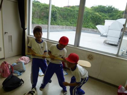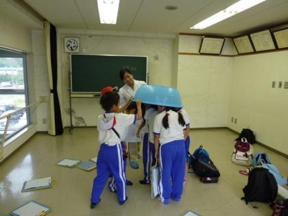 中:大きなざる。子ども5人の頭がすっぽり?!