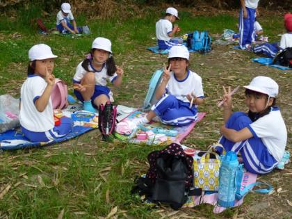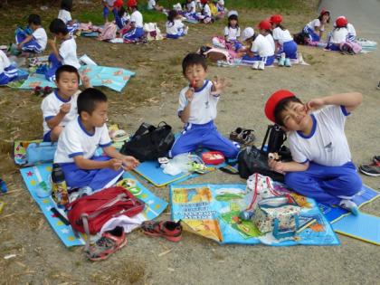☆ 2年 町たんけん(給食センター見学)⑤ 公開日 2012/06/08 更新日 2012/06/08 2年生 6月8日(金) 写真上:お話しながらお外でお弁当。天気が優れないのが残念です。 中:お弁当を落とさないでね。 下:和気あいあいとお昼ご飯です。 いいね(0)