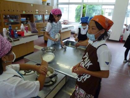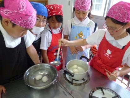 今日の5年B組の家庭科は、調理実習でした。