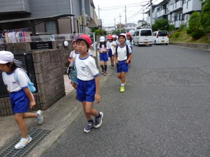 中:列になって町をたんけんします。上手に並んで歩きます。