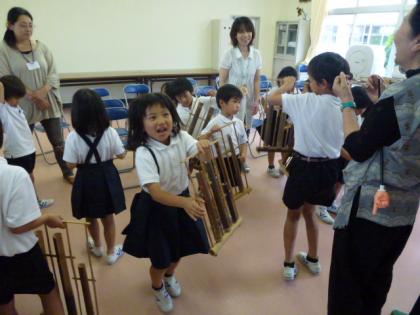 ☆ 放課後ふれあい教室② 公開日 2012/06/11 更新日 2012/06/11 トピックス 6月11日(月) 写真上:どう持つの?どう鳴らすの? 中:これでいいよね。 下:こんな楽器だよ。 いいね(0)