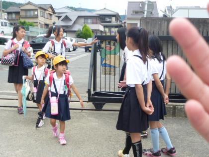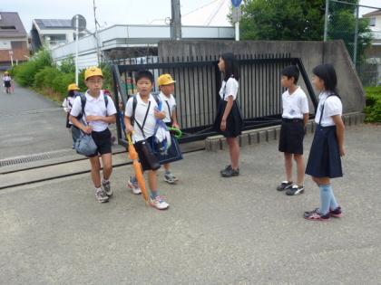 ☆ あいさつ運動④ 公開日 2012/06/12 更新日 2012/06/12 児童会活動 6月12日(火) あいさつ運動お疲れさまでした。 写真上:男子も恥ずかしがらずに「おはようございます」。よくできました。 中:集団登校で6年生が1年生と一緒に来るのは、とても微笑ましいね。 (手前の指が気になりますが・・・) 下:今朝の担当は、この4人でした。 カメラに向かって「おはようございます」。 いいね(0)