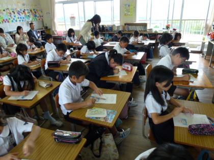 ☆ 4年 人権学習② 公開日 2012/06/13 更新日 2012/06/13 4年生 6月13日(水) 写真上:もしも、自分だったらどうするかなぁ。 中:一生懸命考えて発表しました。 下:なるほど。他の人の考えを聞くのも大事だね。 いいね(0)