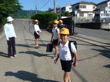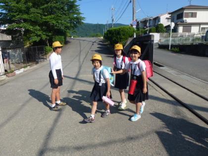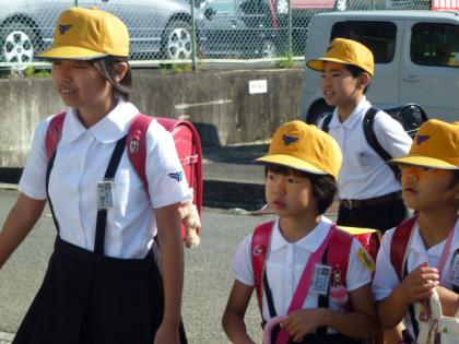 中:毎朝の集団登校。6年生のお姉ちゃん、ありがとう。