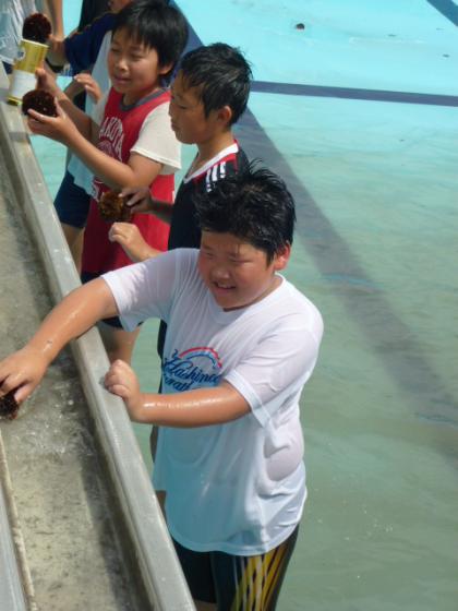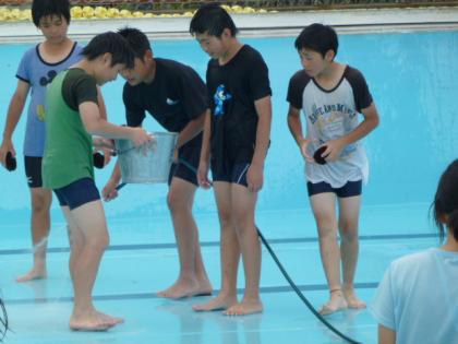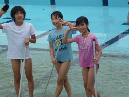 ☆ 6年 プール掃除③ 公開日 2012/06/14 更新日 2012/06/14 6年生 6月14日(木) 写真上:片手にブラシ、もう片手はピース! 中:ゴミが一番たまっている場所だね。たわしでゴシゴシ。 下:バケツの水をかけて、さあゴシゴシ排水溝まで一気にこするぞ! いいね(1)