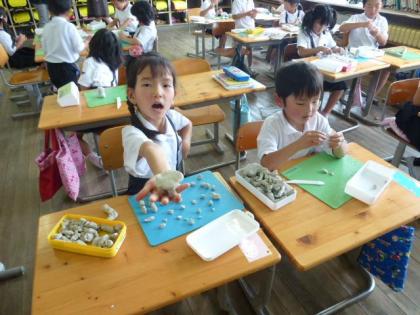 ☆ 1年図工(粘土) 公開日 2012/06/15 更新日 2012/06/15 1年生 6月15日(金) 一年生の図工の時間に粘土を使いました。 写真上:粘土で作った作品を見せてくれました。 中:粘土で造形物を作ることは想像力や計画性を培います。 下:何も言わなくても作っているものを見せてくれます。 いいね(0)
