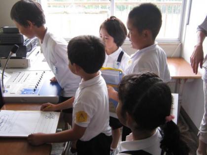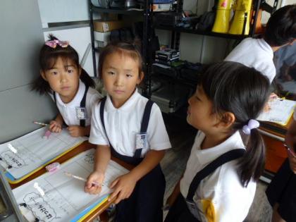 ☆ 1年 学校たんけん③ 公開日 2012/06/20 更新日 2012/06/20 1年生 6月20日(水) 写真上:ちょっと放送する真似をしてみたよ、ドキドキ。 中:なかなか来れないお部屋です。うれしいね。 下:見つけたもの・気づいたことを発見カードに書こう。 いいね(0)
