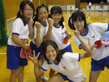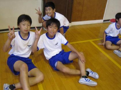 写真上:シャトルランを終えた6年女子。