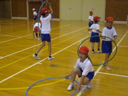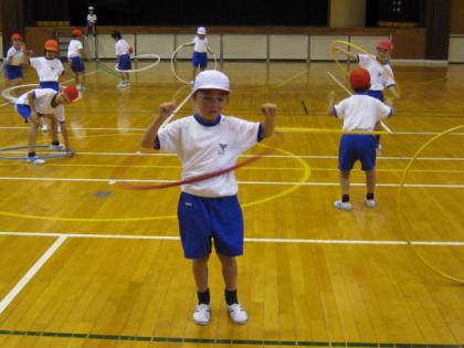 ☆ 1年 体育(フラフープ)① 公開日 2012/06/21 更新日 2012/06/21 1年生 6月21日(木) 1年生は、体育の時間にフラフープを使って授業を行いました。 バランスやコツのいる難しい運動です。 写真上:上手に回すことができています。 中:足でも回すことができるかな? 下:うまい、うまい、その調子です。 いいね(0)